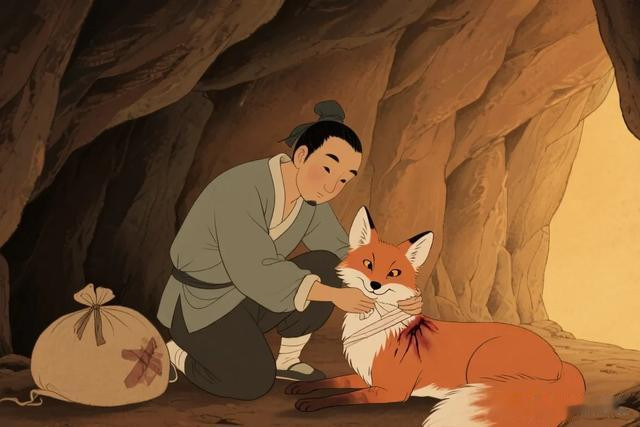 大柱这才道出原委。原来今天砍柴时,他在山洞里发现了一只受伤的狐狸,被猎人设下的夹子夹住了腿,奄奄一息。他动了恻隐之心,小心翼翼地取下夹子,为狐狸包扎好伤口。狐狸竟像是通人性一般,对着他点了点头,然后一瘸一拐地跑进山洞深处,不一会儿叼出这个布包放在他面前。